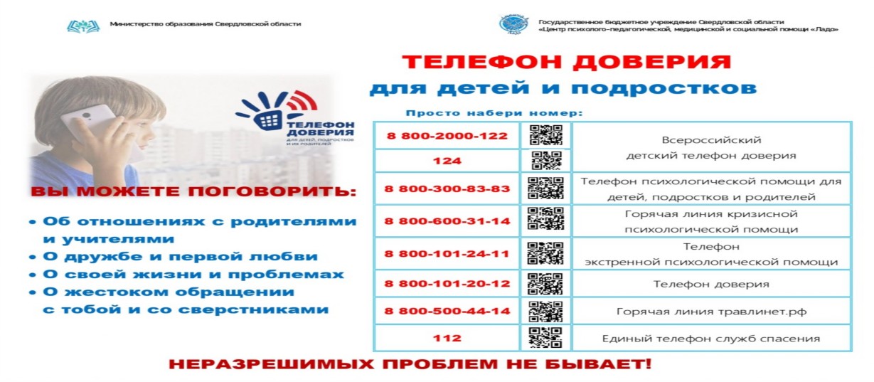 Свердловский областной круглосуточный бесплатный телефон доверия и психологической помощи 8-800-300-11-00.